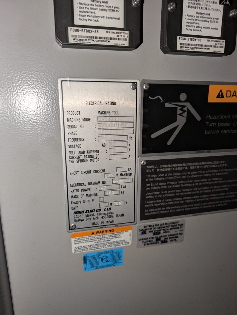 Model Mori Seiki NHX4000, S/N NHX40111218